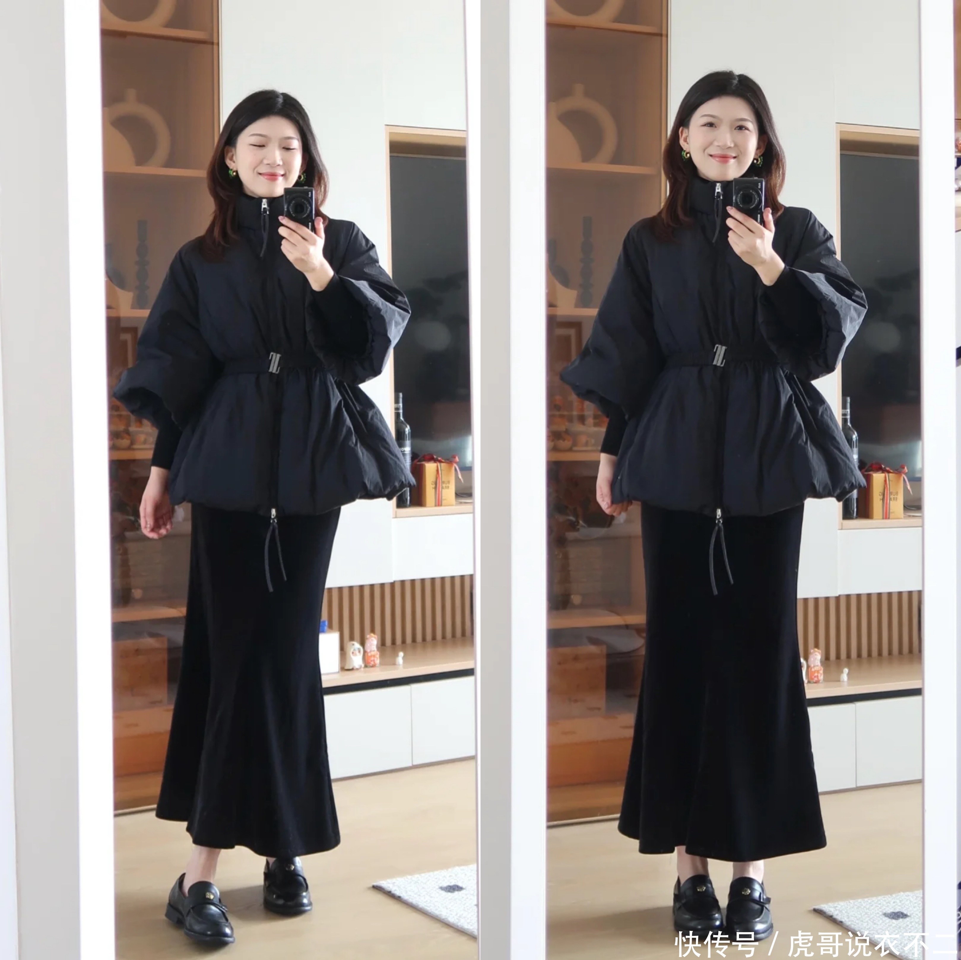 鱼尾裙是众多半身裙中同时兼具显瘦又优雅高级的单品,冬天想要保暖的同时又能穿出好身材,推荐选择黑色中长款收腰羽绒服,既能保暖还能杜绝上半身太过臃肿,又能打造曲线感,下半身搭配黑色灯芯绒鱼尾裙,整体造型真的太美了。