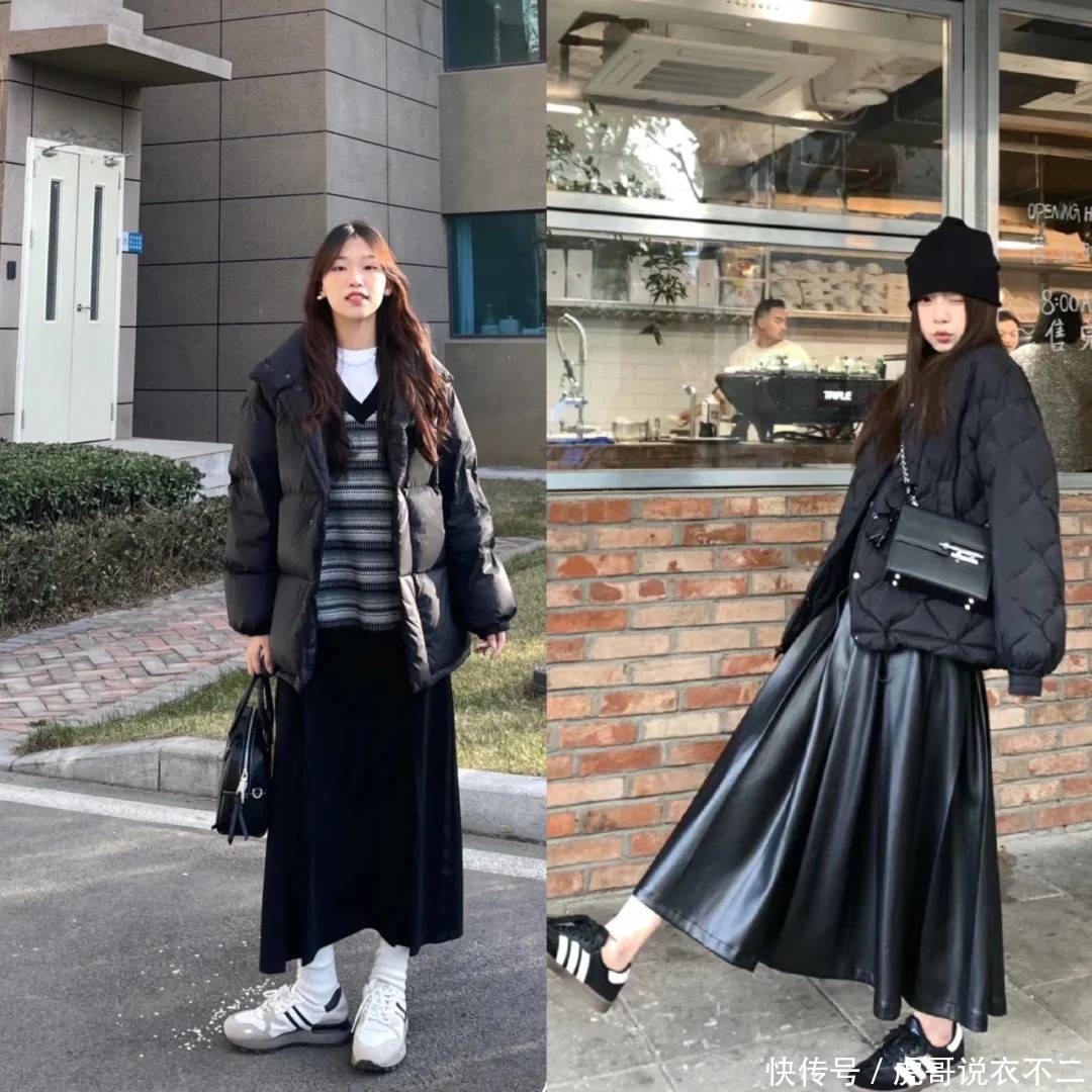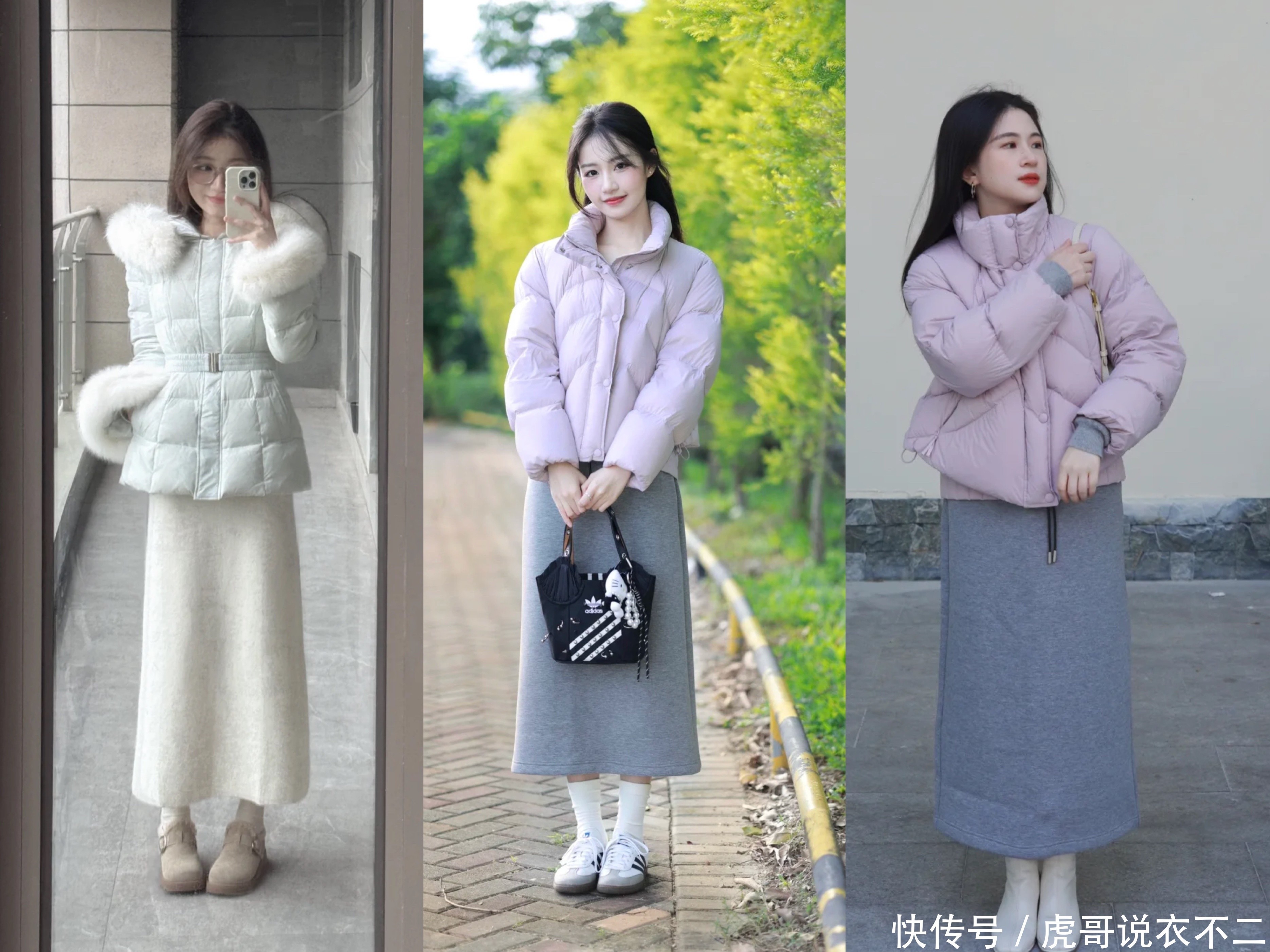 羽绒服配伞裙,冬日甜暖风轻松拿捏!选短款羽绒服提升腰线,与高腰伞裙形成上紧下松的廓形对比。内搭选修身针织衫防臃肿,也可以选择针织衫叠穿T恤来增加个性。颜色上同色系显高级,撞色搭配更活泼。配饰加针织帽或围巾,氛围感瞬间拉满!